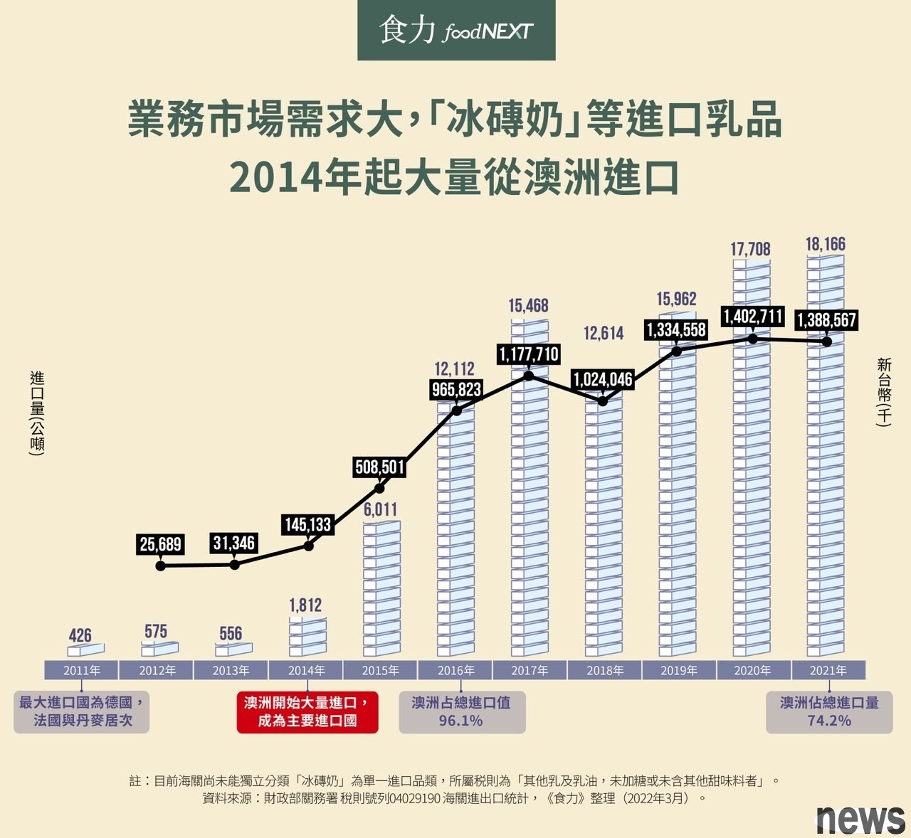 Regarding the source control and supervision of ice tiled milk, dairy importers and dairy associations pointed out that the current import number of "ice tiled milk" imported from Taiwan is "other milk and emulsion oil, without sugar or other sweeteners" (0402919000), and is not independently distributed, so it is impossible to accurately grasp the import amount of ice tiled milk every year. It can be seen that neither industrialists nor ordinary people can clearly know the source and where ice brick milk comes from. In this regard, Zhang Dong, the director of the Animal Husbandry Department of the Agricultural Committee, told "Food Power" that he had indeed heard of this demand and would be included in management in the future. He hoped that Taiwan's ice brick milk market would have a clearer profile in the future..