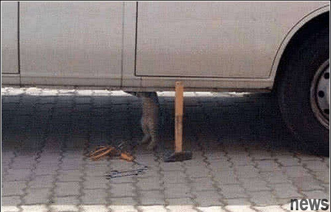 The male protagonist was very confused. What is the cat doing? When I walked in, I felt uneasy. I saw the cat holding a wrench next to the car to see if the owner was there, and then the cat took out the hammer on the side and pushed it under the car. The hind limbs were supported on the ground, and the forelimbs were under the car to repair the car. The male protagonist was shocked when he saw the tools scattered all over the floor. Isn’t this exactly the same as what I usually do when I repair a car?