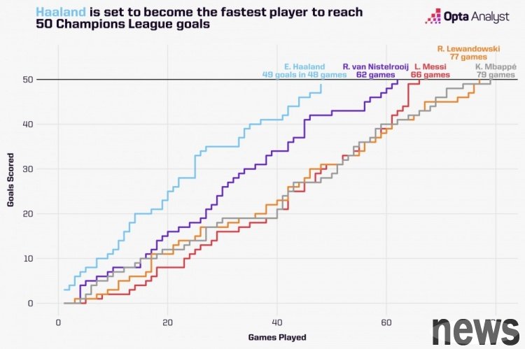 In the first round of the Champions League phase, Manchester City will face Naples at home. If he scored in this game, Haaland will reach the 50-goal milestone in the Champions League, and in just 49 Champions League games, becoming the fastest achie...
