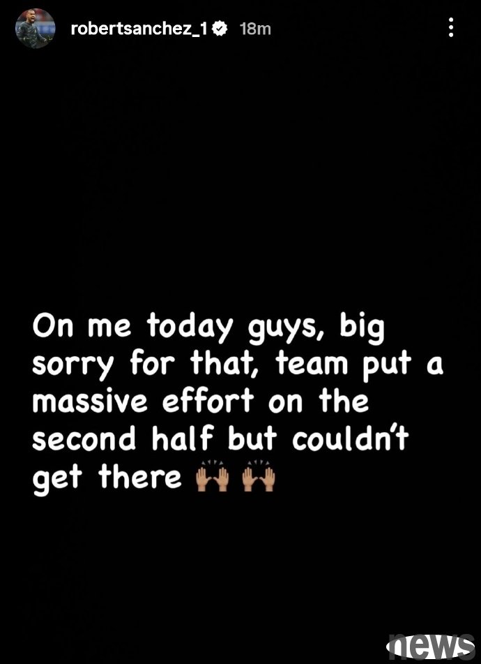 In this round, Manchester United defeated Chelsea 2-1. After the game, Chelsea goalkeeper Sanchez, who was dyed red in the first four minutes of the game, issued an apology. "Guys, I'm so sorry for blaming me today. The team made great effo...