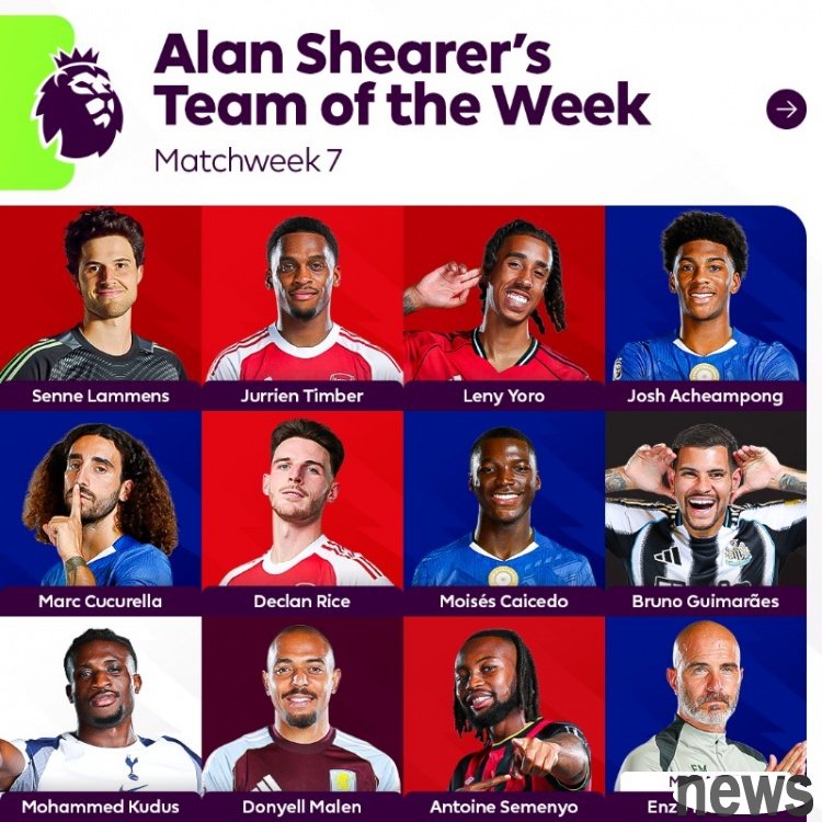 English football legend Shearer awarded the best team in the 7th round of the Premier League, with Kesedo, Rice, Kudus, Yoro and Lamens in the rankings, and head coach Maresca. Hiller named the 7th round of Premier League Premier League: Goalkeeper:...
