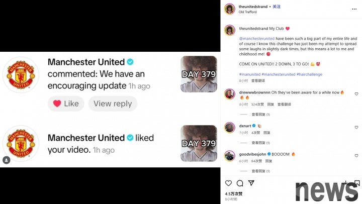 In this round of the Premier League, Manchester United defeated Liverpool 2-1 and achieved two consecutive victories. After the game, the famous Manchester United fan "Hair Brother" posted a screenshot on social media. From the picture, you can see that Manchester United's official social media liked his video and commented: We have made encouraging progress.