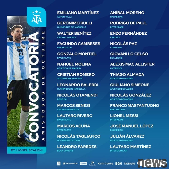 Argentina announces the new roster, with Messi leading, Lautaro, Alvarez, Pas, and Lo Celso in the list, Enzo ends the suspension and returns.