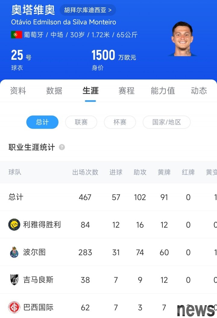 Recently, Saudi United team Hubairkudicia officially announced that it had successfully signed 30-year-old Portuguese midfielder Otavio from Riyadh. German transfer data showed that the transaction did not incur transfer fees.